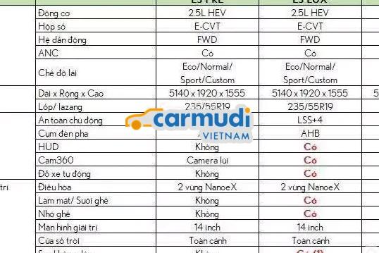 ES350h Premium (Hybrid): ~2.45 tỷ.