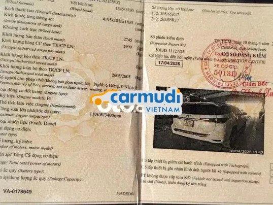 Xe chính chủ, còn bảo hiểm thân võ, thùng có nắp thùng cuộn điện, màn hình, cam 360 và áp suất lốp. Cảm ơn quý khách đã xem tin!